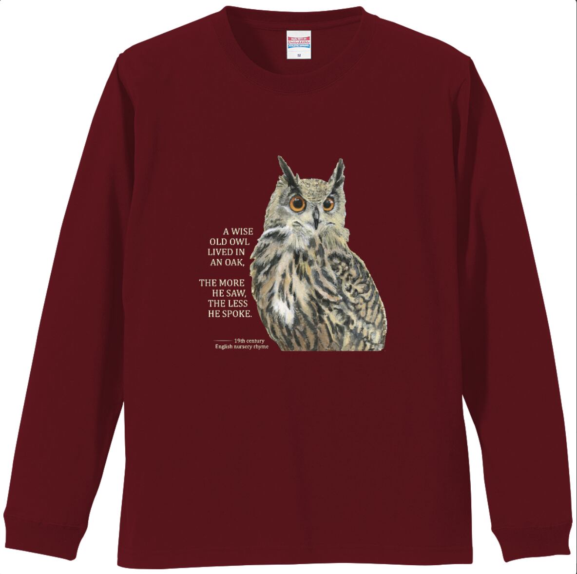 長袖Tシャツ(フクロウデザイン1・リブ有り)